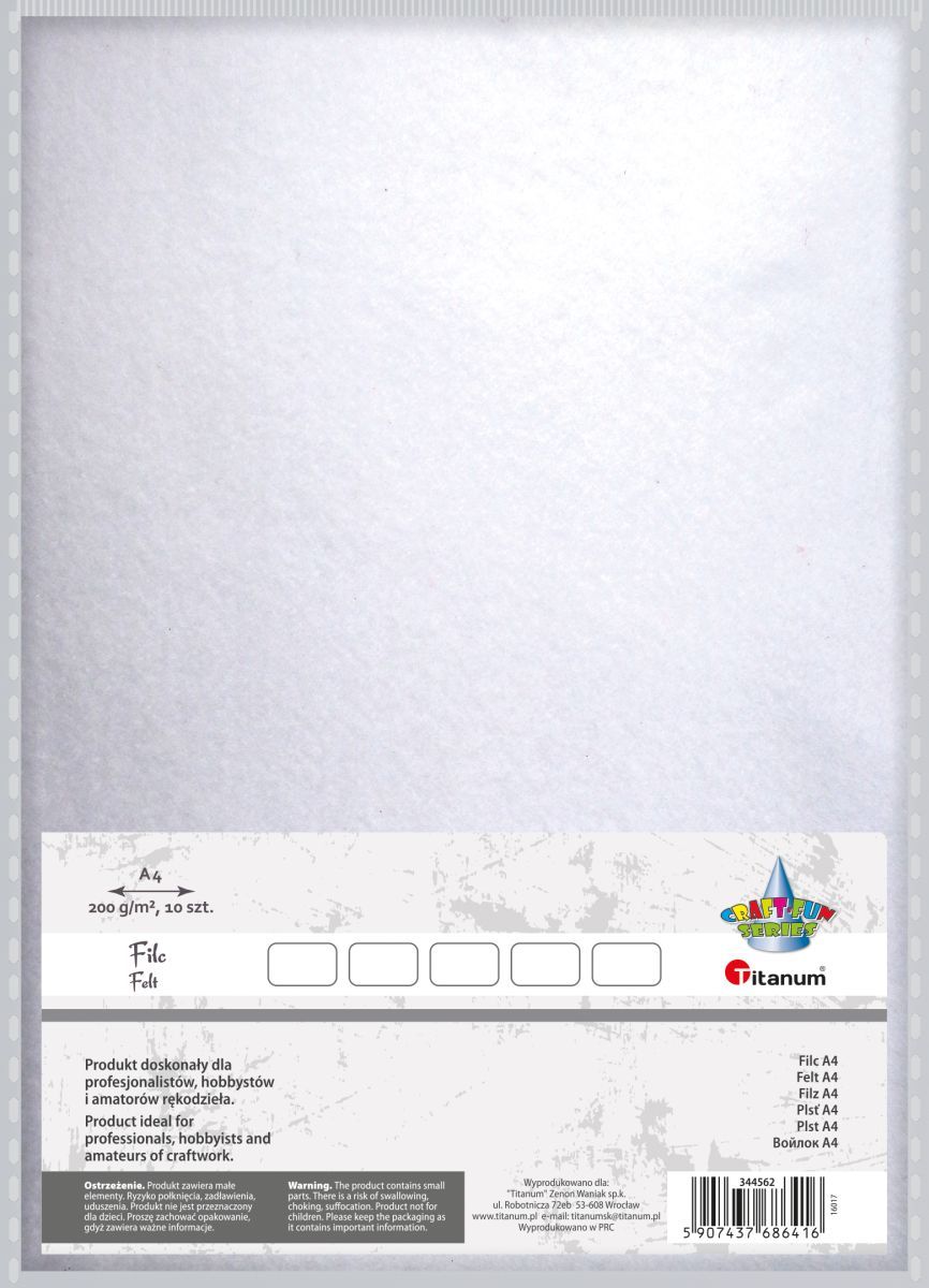 Filc Craft-Fun Series A4 kolor: biały 10 ark. [mm:] 210x297 Titanum (344562)