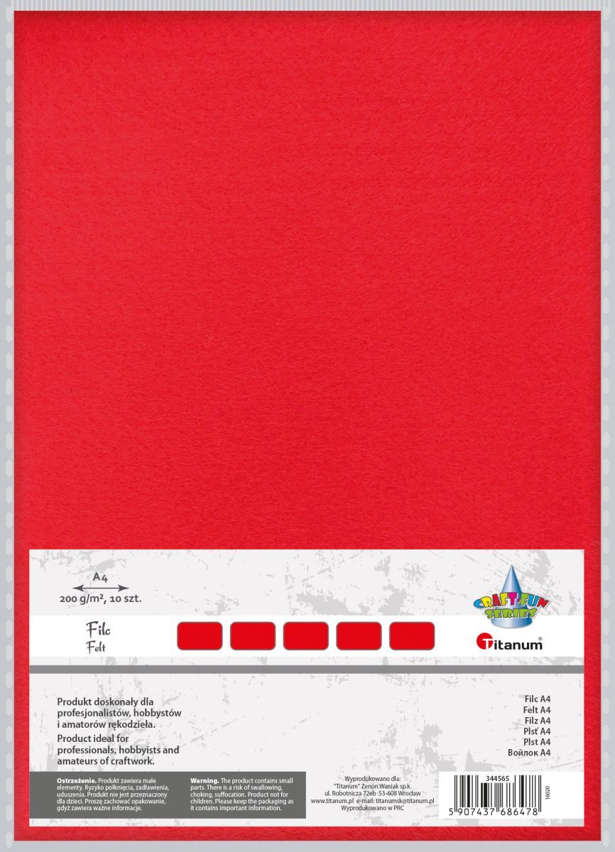 Filc Craft-Fun Series A4 kolor: czerwony 10 ark. [mm:] 210x297 Titanum (344565)