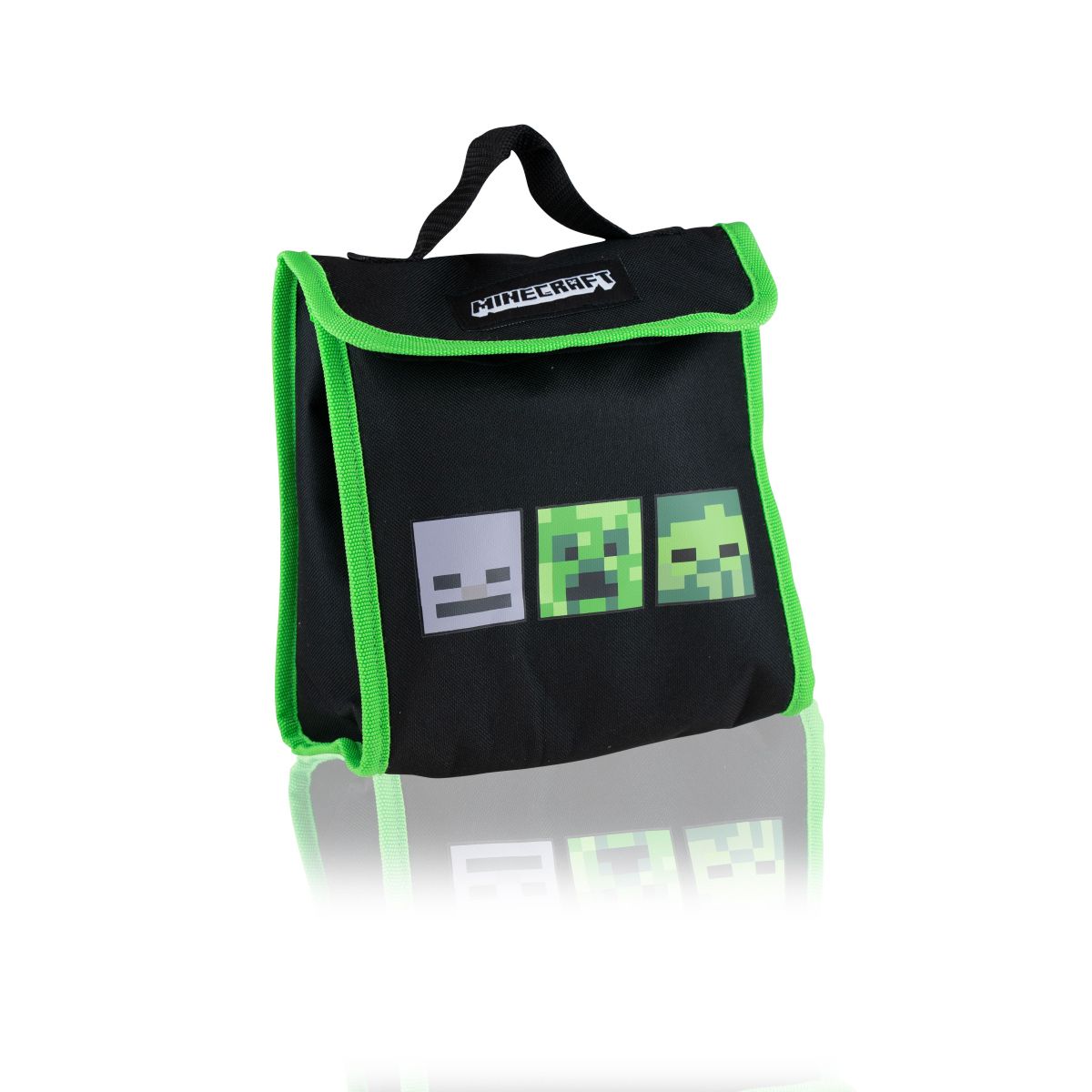 Niesamowity zestaw Minecraft składający się z jednokomorowego plecaka, torby śniadaniowej, bidonu i piórnika.