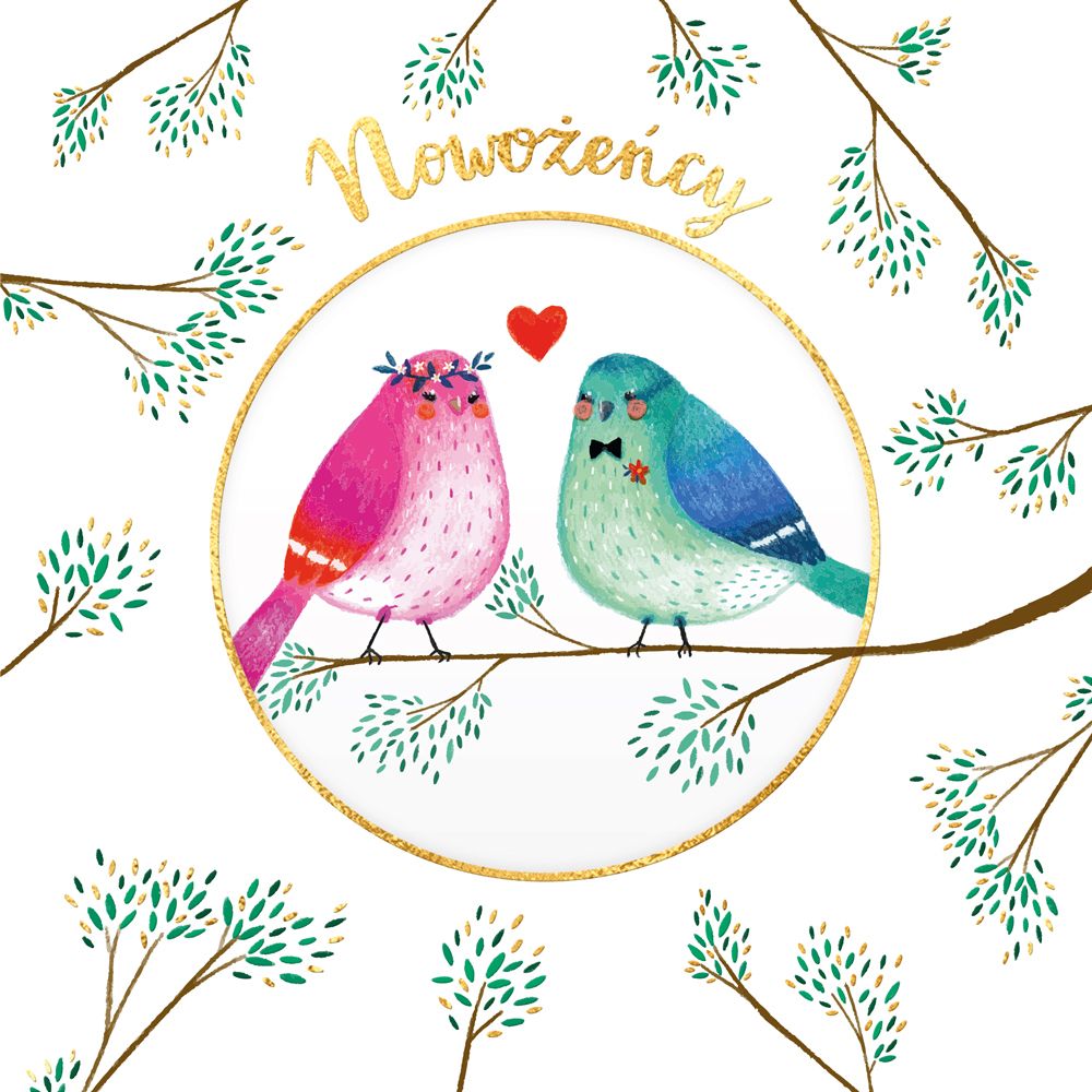 Kartka składana KARNET KW KÓŁKO SLUB PTAKI kw Henry (5907465665131)