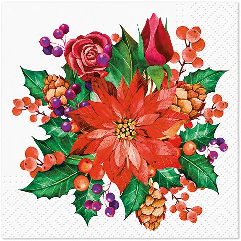 Serwetki Coktail BN Poinsettia With Cones mix bibuła [mm:] 250x250 Paw (SDC238700)