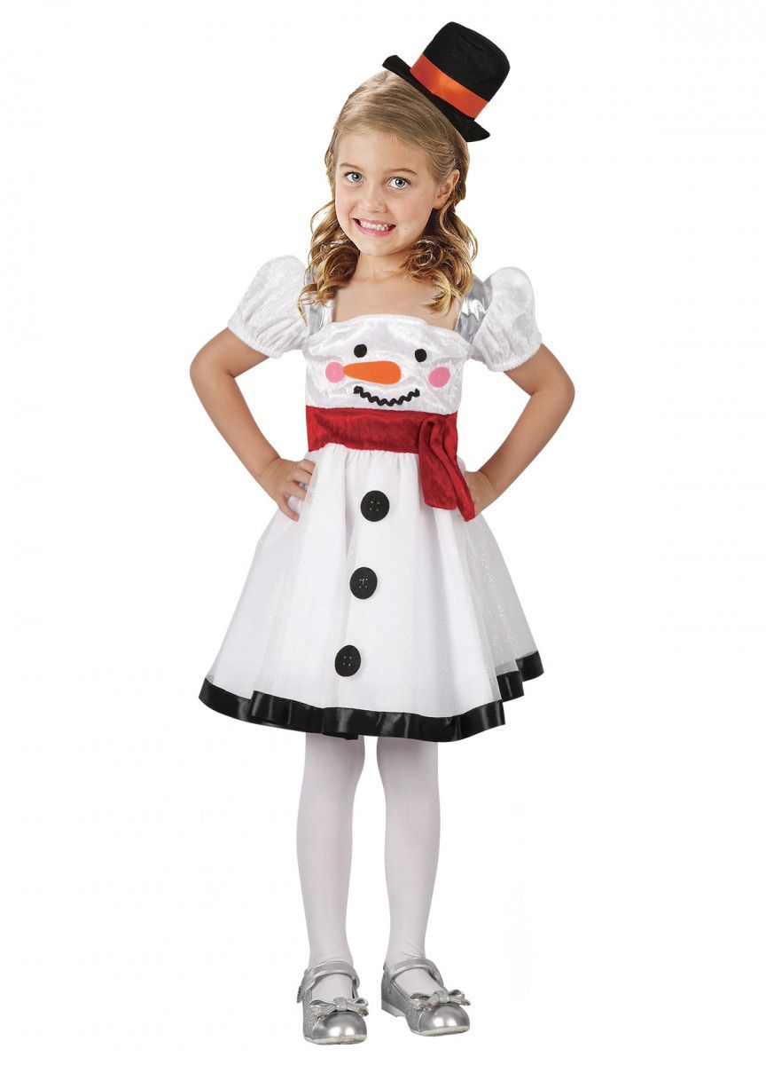 Dziecięcy strój zimowy, świąteczny bałwanek. Komplet składa się z sukienki oraz opaski na głowę. Sukienka z nadrukiem bałwanka, wierzchnia warstwa pokryta brokatem imitującym iskrzący się śnieg na mrozie. Sukienka posiada halkę utrzymującą ładną, rozkloszowaną formę po założeniu. Kapelusz bałwanka został umocowany na opasce na głowę zapewniając wygodę noszenia. Dziecięcy strój na zabawę tematyczną lub przedstawienie. Strój w rozmiarze L (130-140 cm).