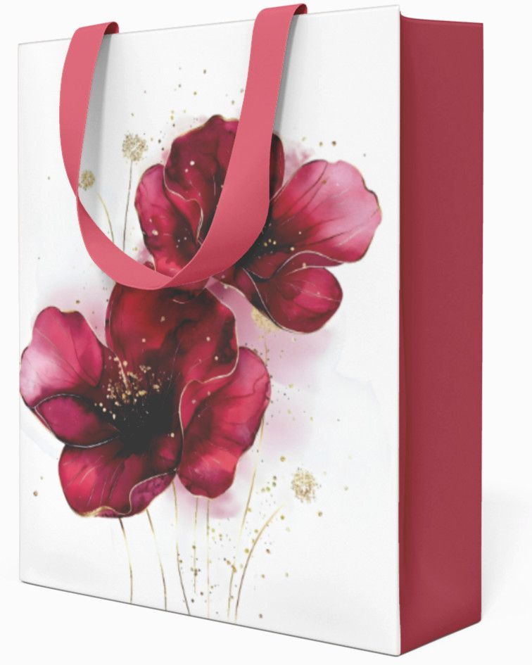 Torby wykonane są z papieru o gramaturze 210 gsm, powlekane matem, , z satynowymi wstążkami.
