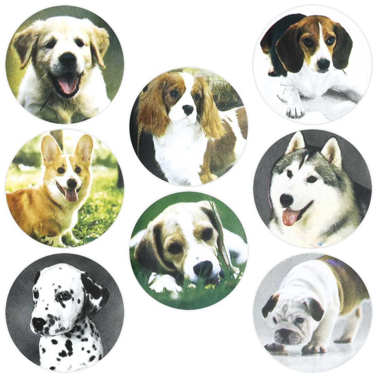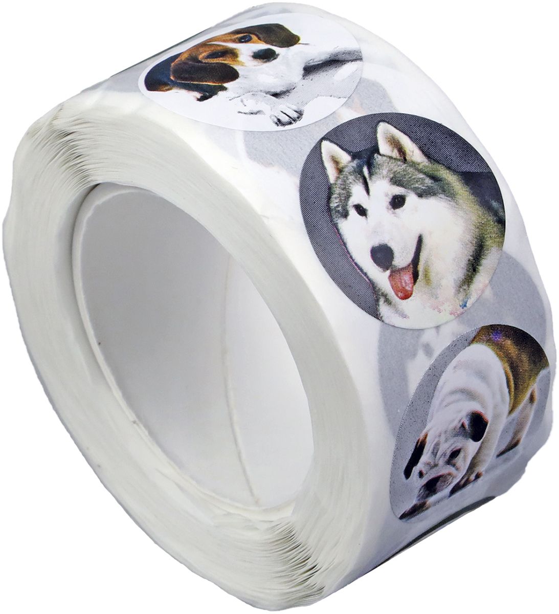 Naklejki papierowe na taśmie, 8 wzorów psy. 500 sztuk.