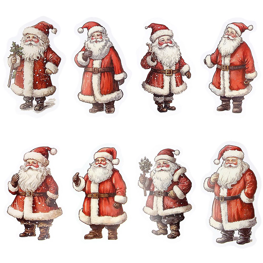 Naklejki papierowe na taśmie, 8 wzorów Boże Narodzenie - Mikołaje. 250 sztuk.