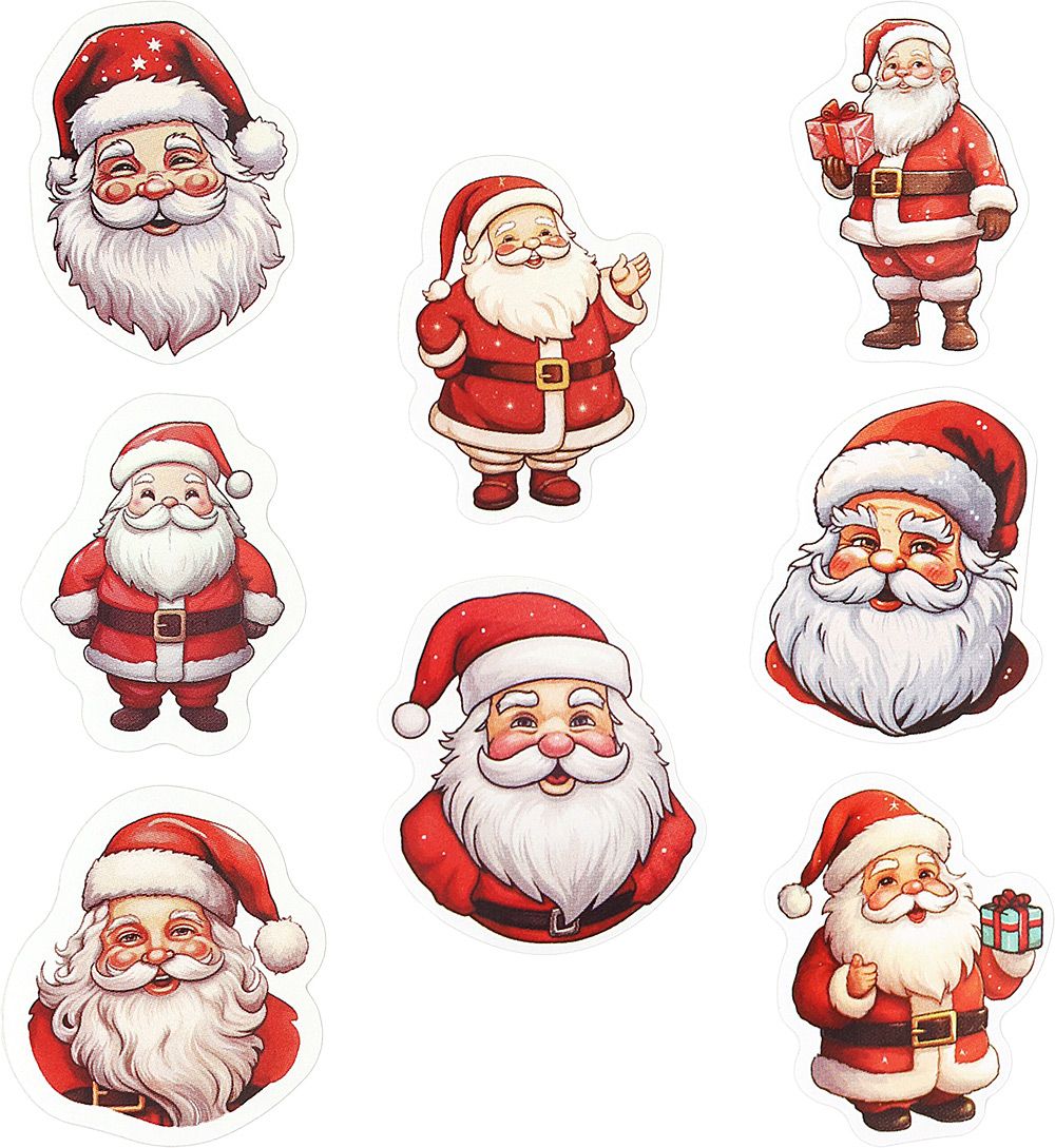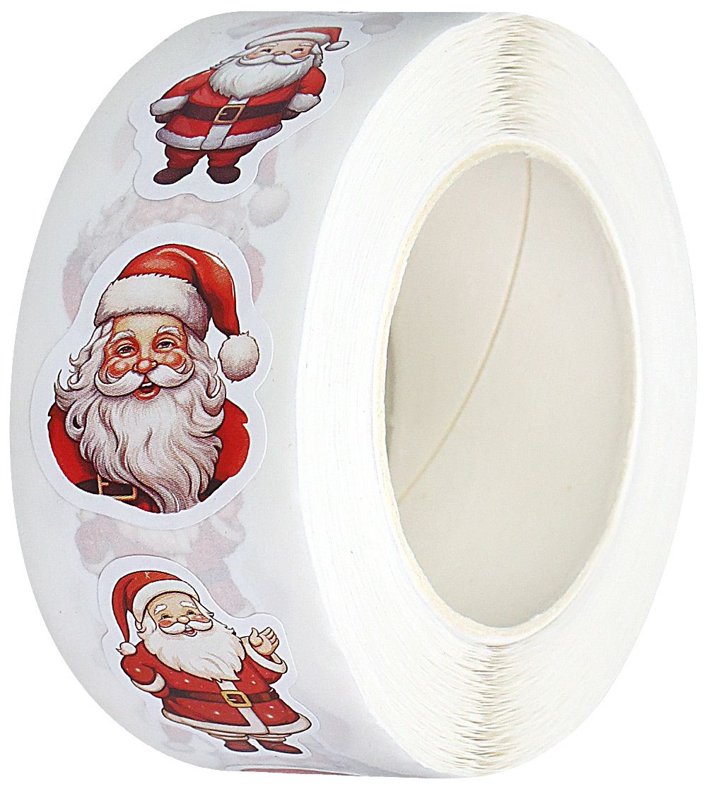 Naklejki papierowe na taśmie, 8 wzorów Boże Narodzenie - Mikołaj. 500 sztuk.
