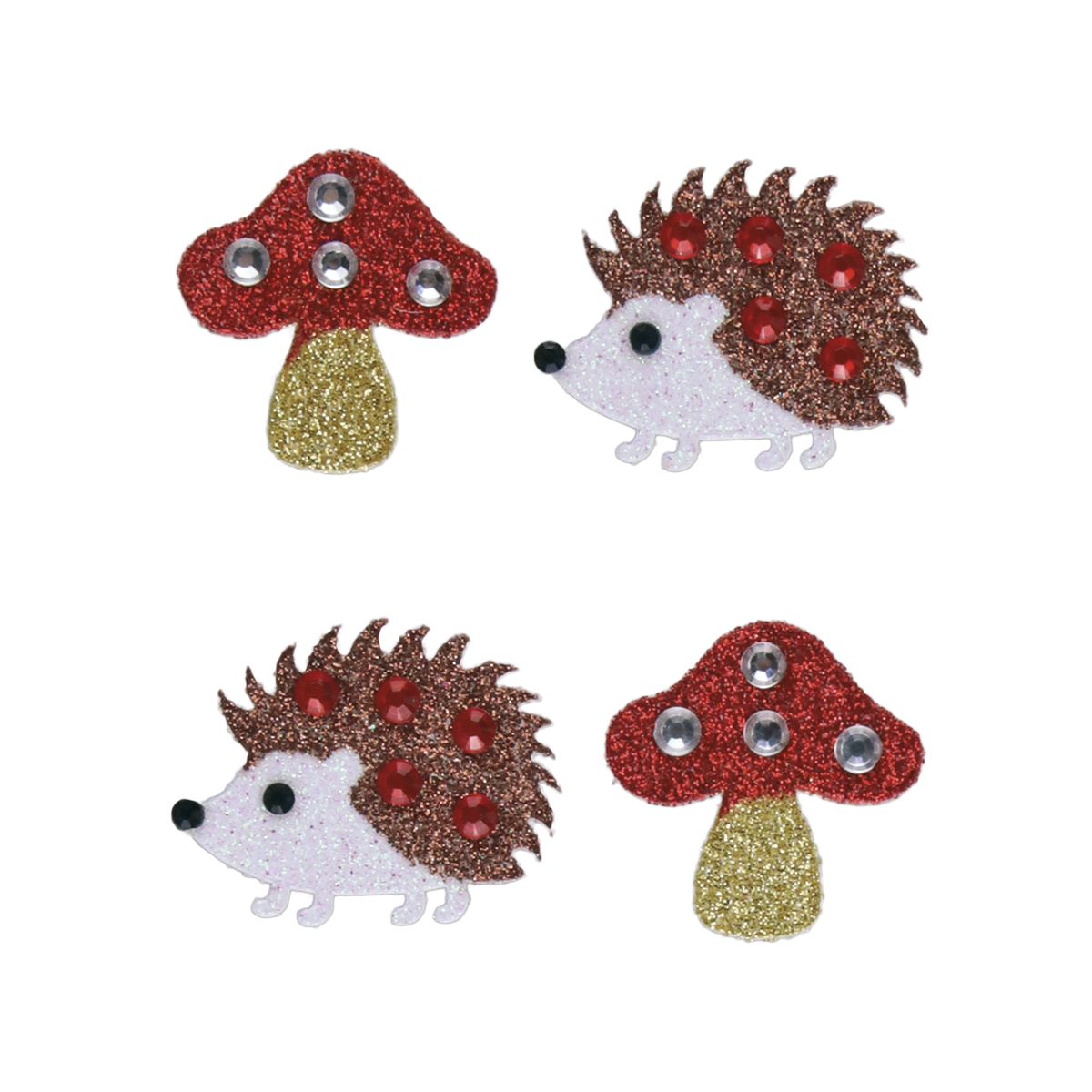 Kryształki samoprzylepne, wzory: muchomorki 20x20 mm, jeże 25x20 mm. 8 sztuk.