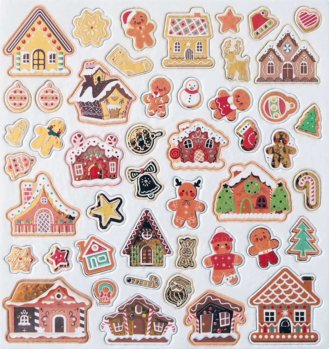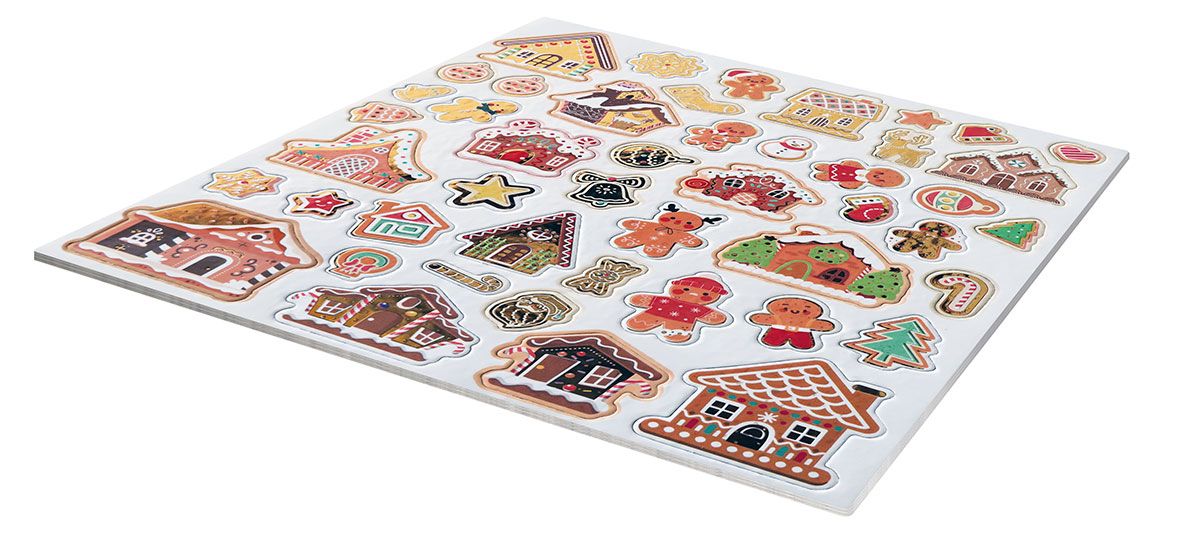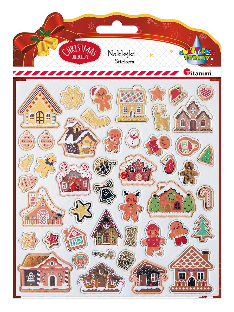 Naklejki 3D, papierowe na filcowej podkładce, wzory: pierniki, mix. 47 sztuk.