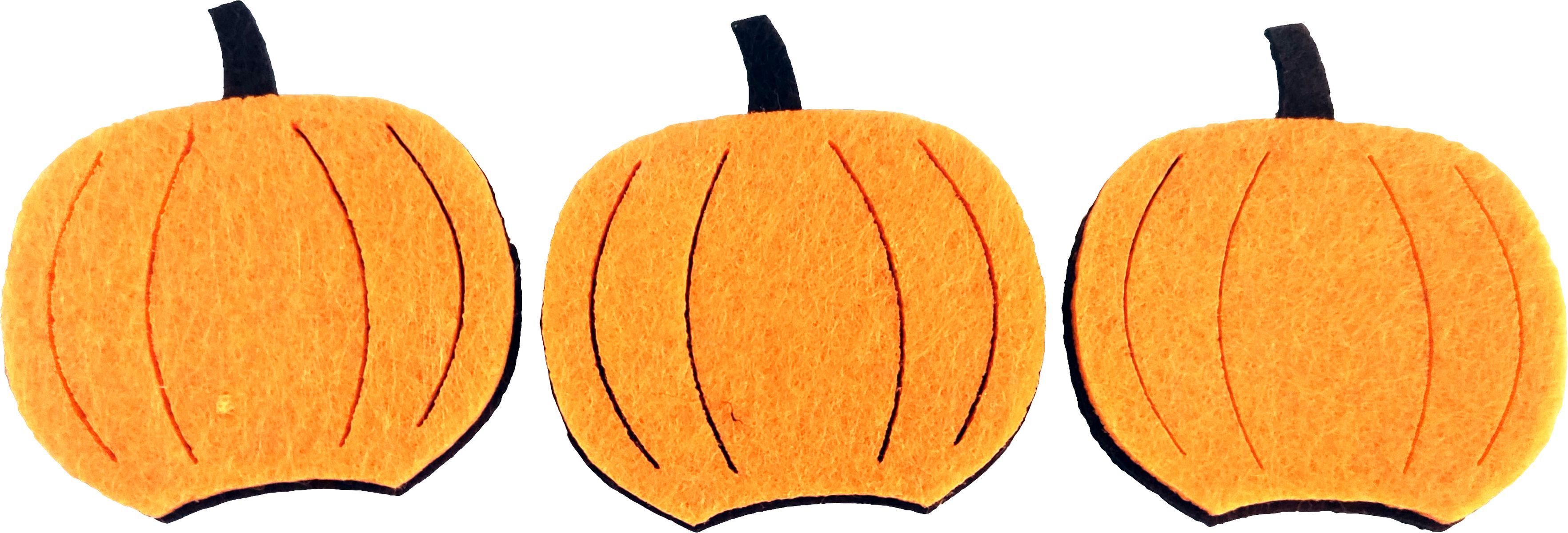 Dekoracje filcowe, wzór: dynie 3D, wymiary: 50x50 mm, kolor: pomarańczowo-brązowe. 3 sztuki.