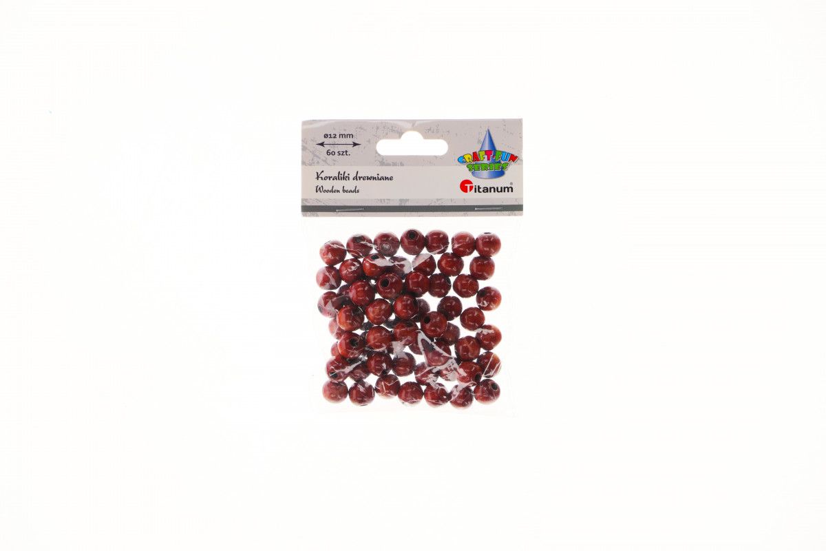 Koraliki drewniane, okrągłe, 12 mm, lakierowane brązowe. 60 sztuk.