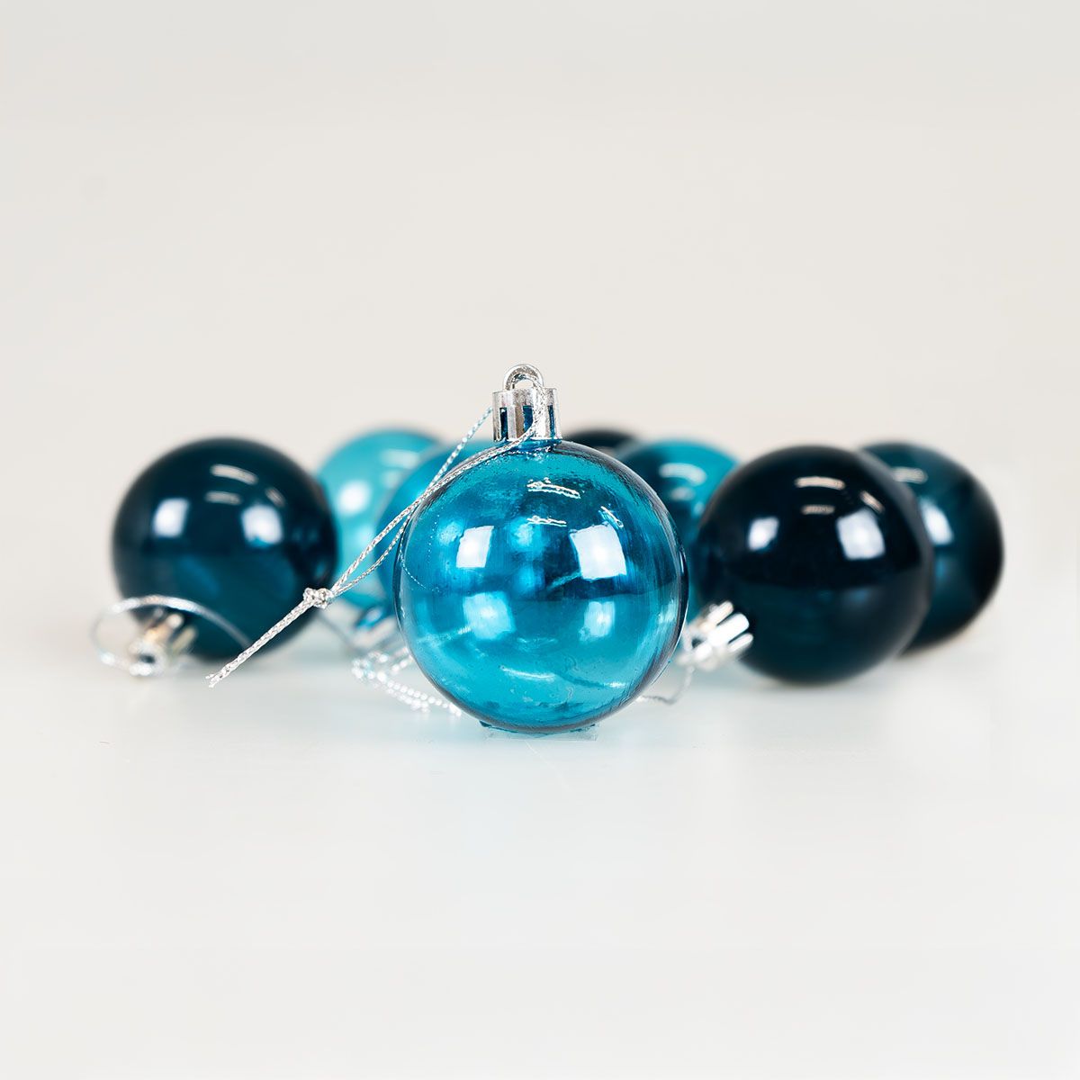 Zestaw bombek transparentnych – niebieskie (8 szt.) to propozycja dla osób, które chcą nadać choince wyjątkowego, chłodnego blasku. Transparentne wykończenie sprawia, że bombki pięknie odbijają światło, a intensywne odcienie niebieskiego dodają wnętrzu nowoczesnego, zimowego charakteru.